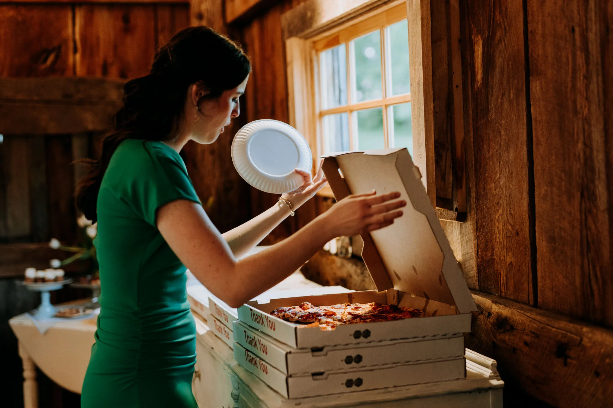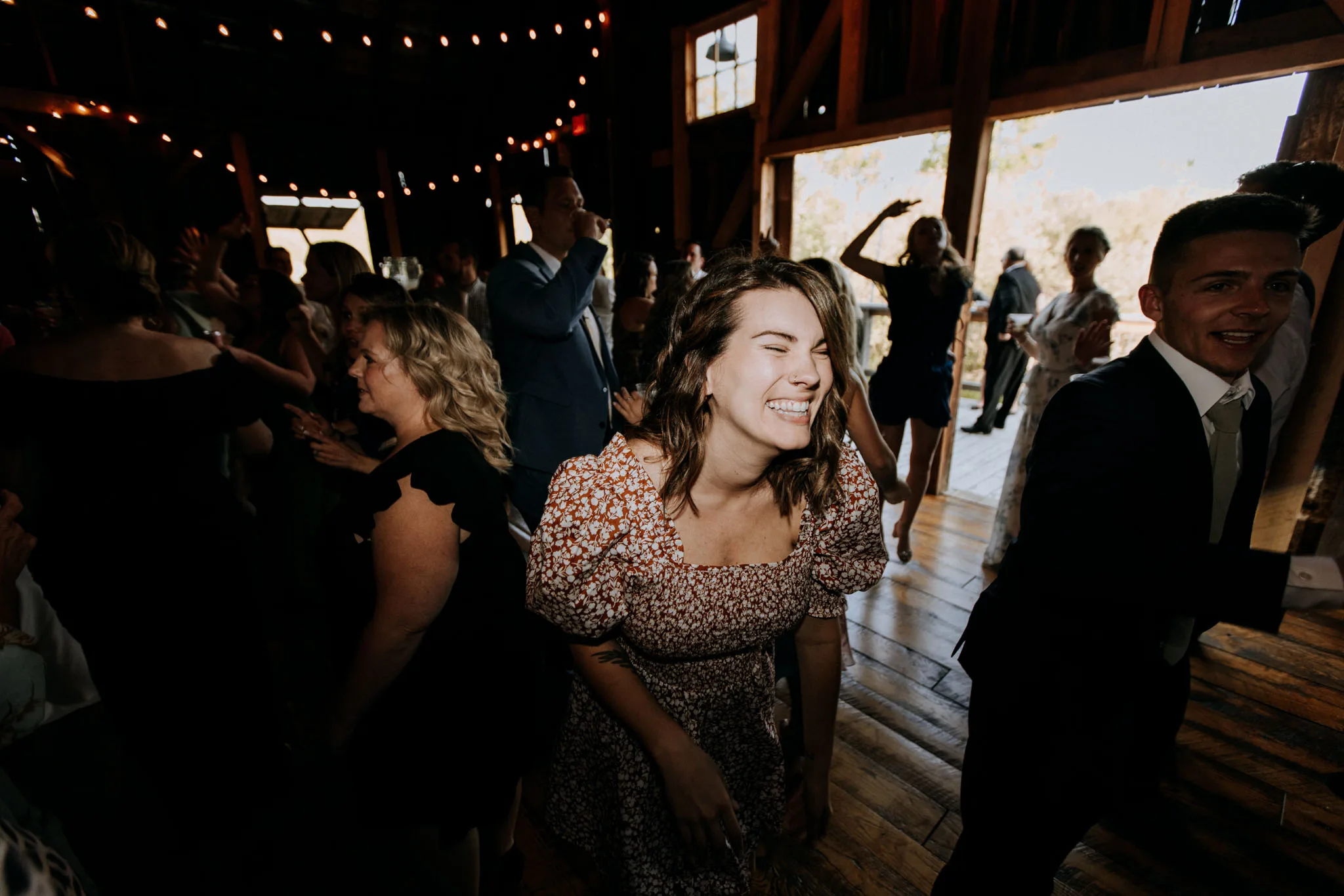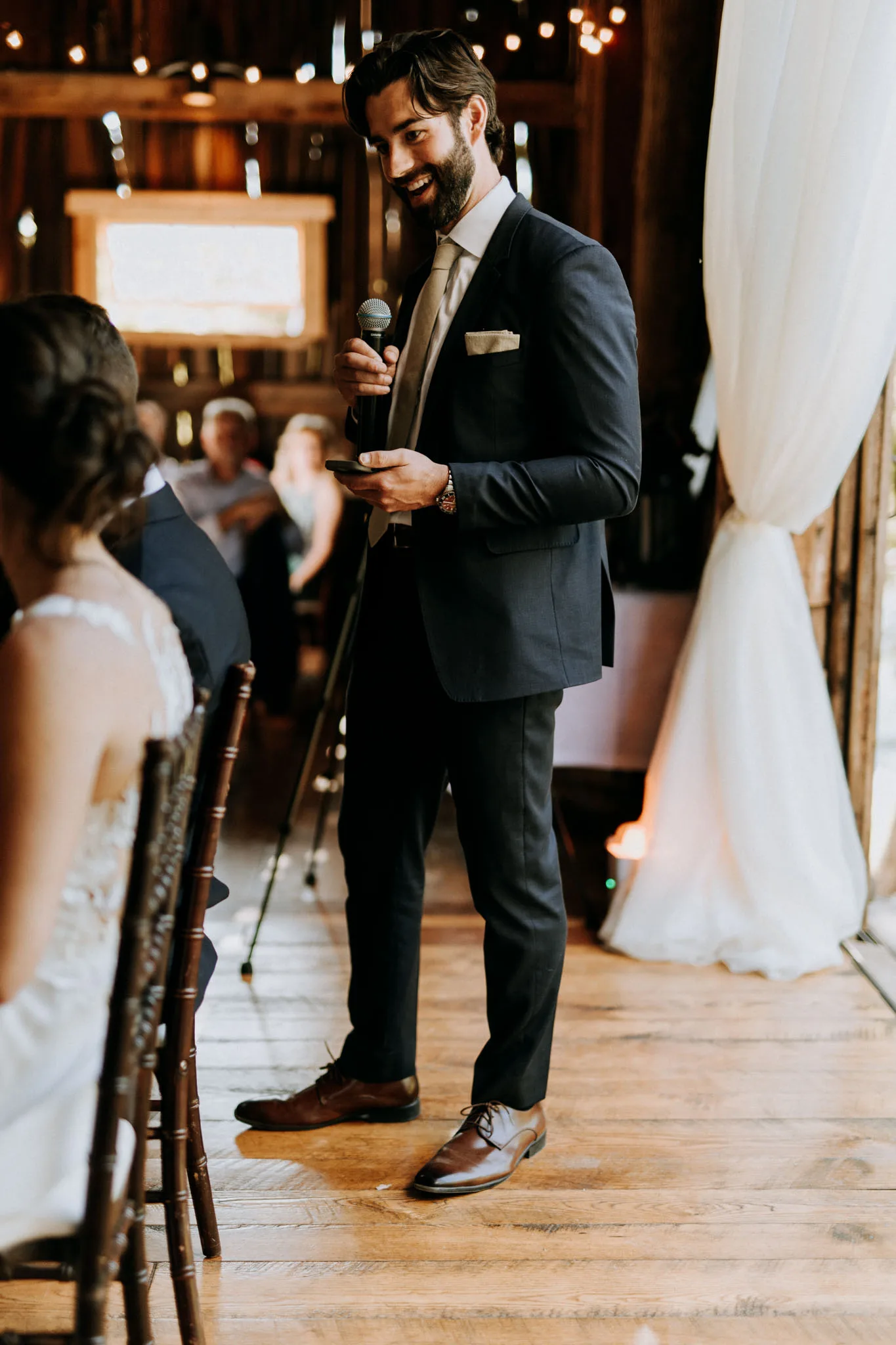 The reception moved into the studio as the evening came on. Starry Night Barn handles the transition from outdoor ceremony to indoor reception better than most venues in Leelanau County -- the spaces connect without the gathering losing its momentum. By the time dinner was underway the room had that quality that happens when the food is good and the people genuinely like each other. If you are planning a summer wedding in Northern Michigan and this venue is on your list, reach out. I know the property well and I'd like to hear about what you're picturing.