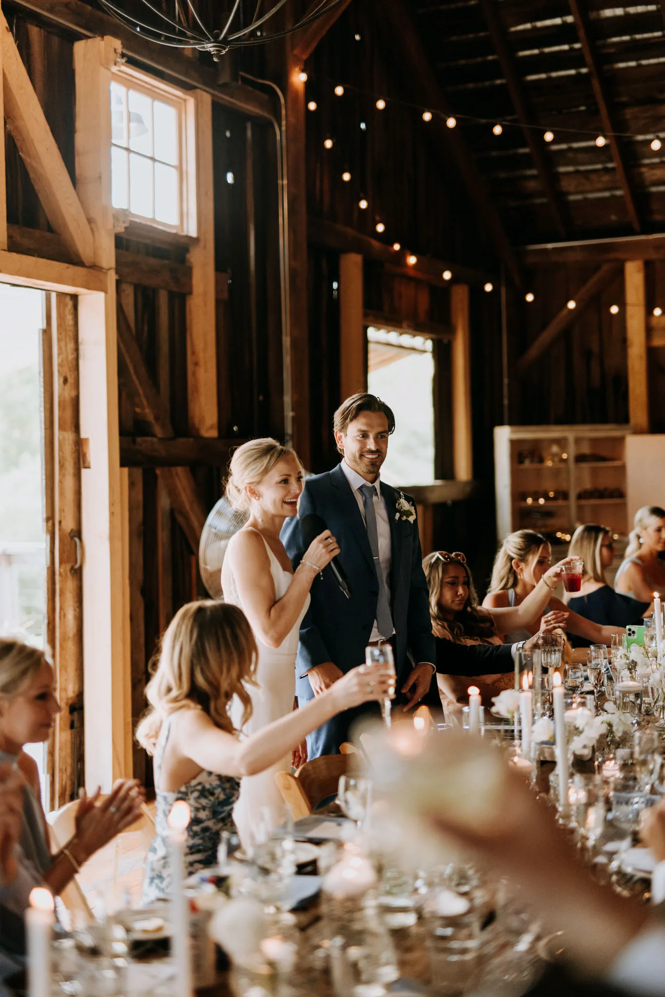 The reception filled the barn as the evening cooled, and the place did what good barns do: it held the sound and light and kept things warm without feeling crowded. The speeches were short and true. The dancing started before anyone announced it. Suttons Bay sits at the narrow end of the peninsula with the bay on one side and orchards climbing the hills on the other, and there is a quality to Leelanau County weddings that is hard to name exactly but easy to recognize once you've worked here. Things feel unhurried. If you're planning a wedding at Starry Night Barn or anywhere in Leelanau County, I'd be glad to hear about it.