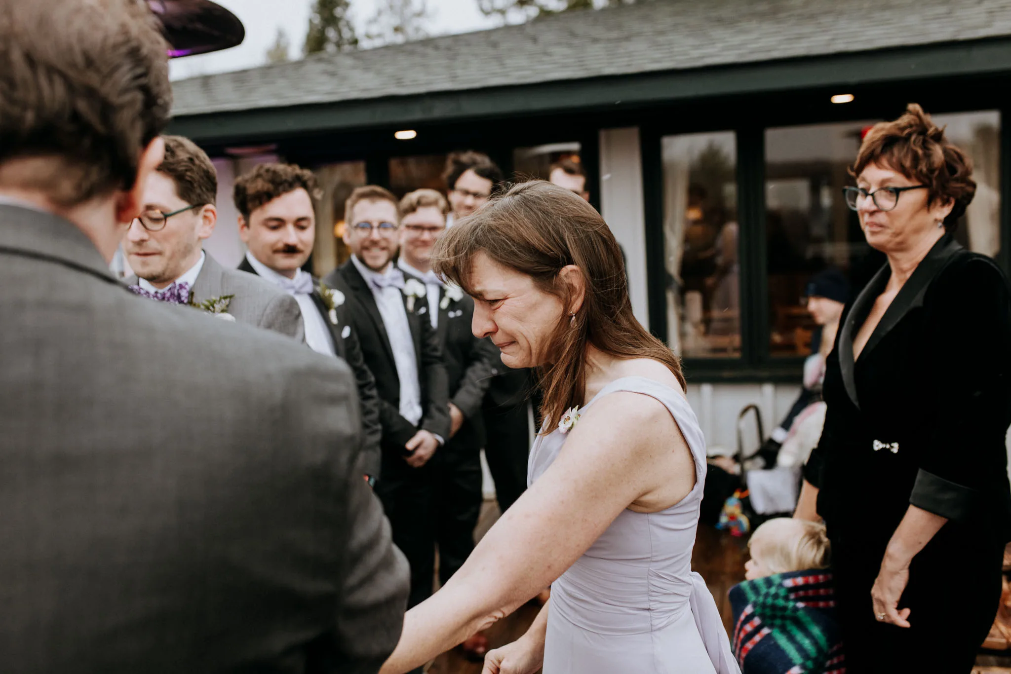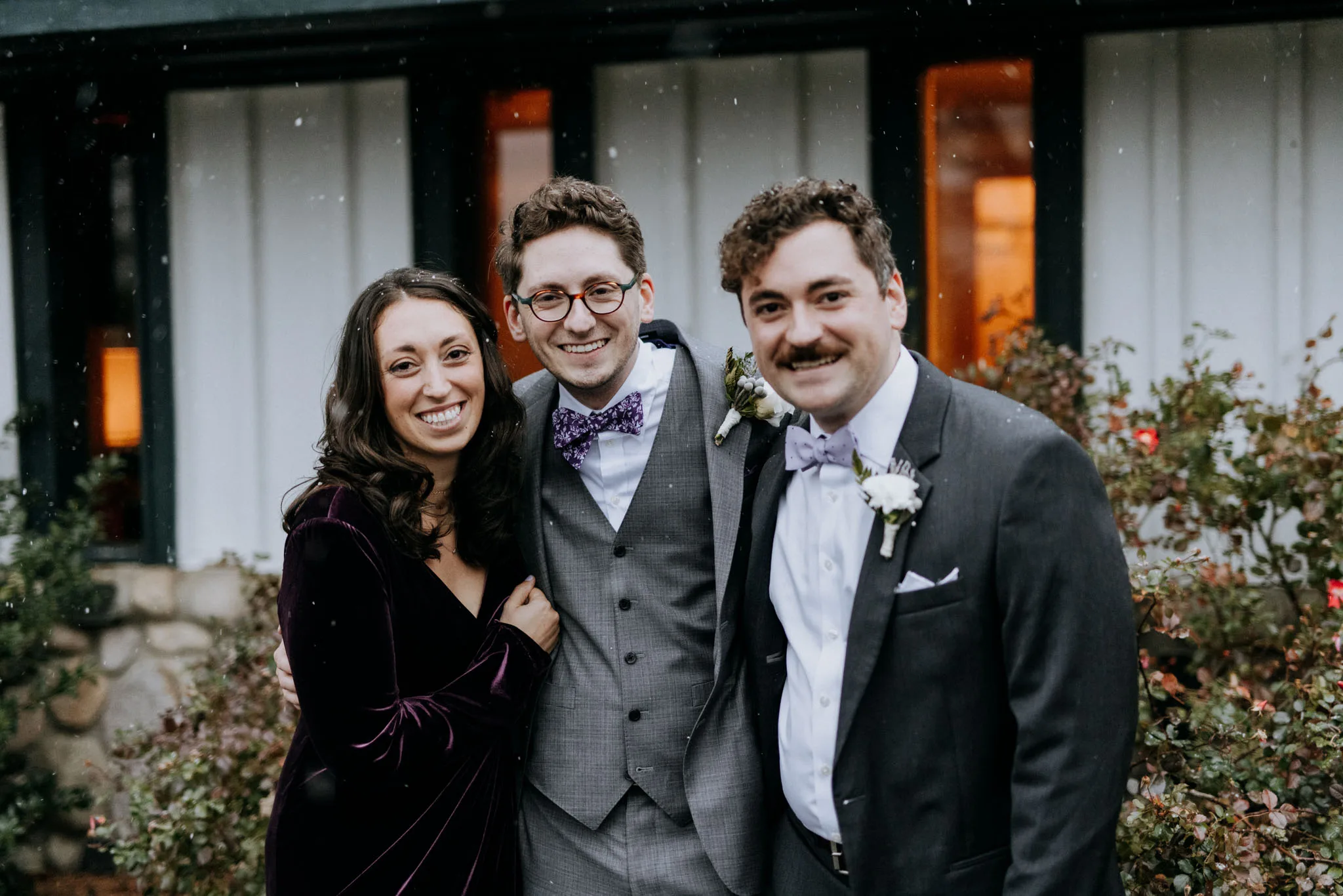 The snow started during the ceremony. Not a few flakes that brushed past and dissolved before anyone could remark on them. It actually snowed. The light changed first, going flat and even the way it does when clouds come in low over the Leelanau peninsula in late fall. Then the flakes appeared, slow and deliberate, and the whole gathering went quiet in that particular way that only happens when it snows.